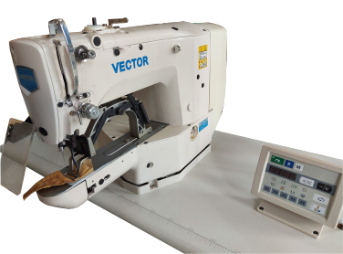 Industrial strait stitch, direct drive stepper motor, underbed trimmer, needle position setting, auto cut, backtacking and foot lifter.